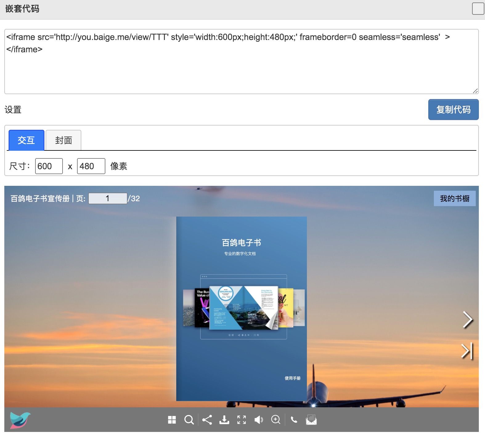 嵌入电子书可以使读者在不离开网页的情况下查看出版物的内容!当您想让客户留在您的网站上时,这很有用。您可以嵌入缩略图预览或整个交互式电子书。它所要做的就是将一小段代码粘贴到您的网页中。