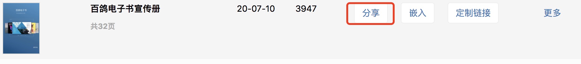 现在该分享您的电子书了!将鼠标悬停在在线帐户内中的电子书上,然后点击分享: