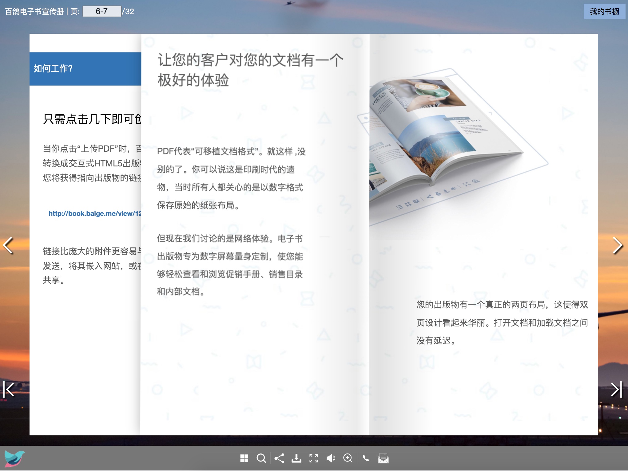 我们确保您的读者可以在移动设备上充分享受干净设计和流畅翻页效果的翻书。台式机上的出版物也是如此。
